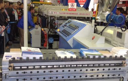 中國國際橡塑展Chinaplas2014 上海展 三益現(xiàn)場生產(chǎn)PVC發(fā)泡板設(shè)備(產(chǎn)量400kg/h)